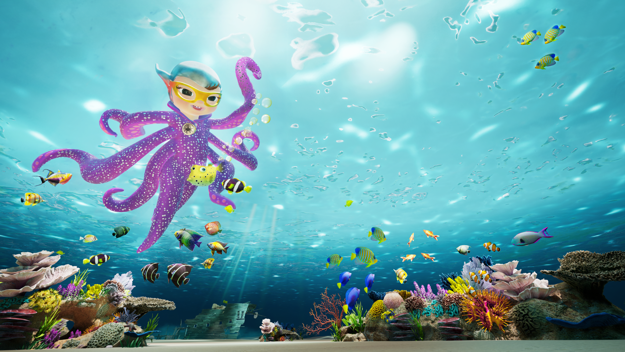 As Luna is an Octopus, she’s very clever and knows everything about her environment. Luna’s skin is shiny silvery - so the surrounding reflects in her skin.